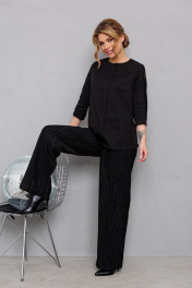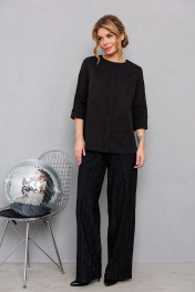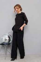 Черная хлопковая блузка с кружевной отделкой и пуговицами AMORI 6458 чёрный