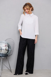 Белая блузка с дизайнерской аппликацией и пуговицами AMORI 6459 белый