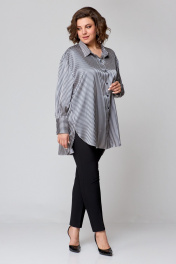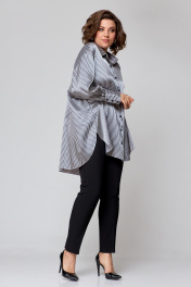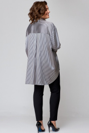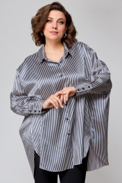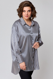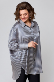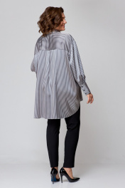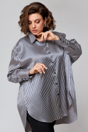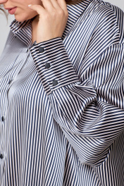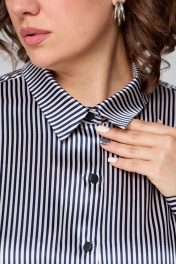 Рубашка свободного кроя из атласной ткани с бантом и закругленными швами AMUARt 1009 сине-бежевая_полоска