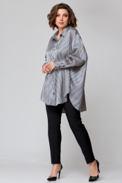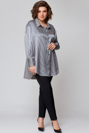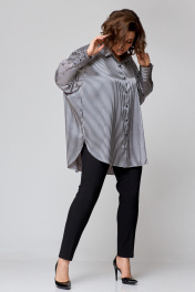 Рубашка женская свободного кроя, выполнена из легкой стрейчевой ткани с атласным переплетением, со спущенной линей плеча и втачным рукавом. Спинка с отрезной кокеткой и бантовой складкой. Рукав одношовный, по низу с притачной манжетой с застежкой на петли-пуговицы. По переду центральная застежка на петли-пуговицы. Боковые швы закругленной формы. Воротник рубашечный. Модель оверсайз!