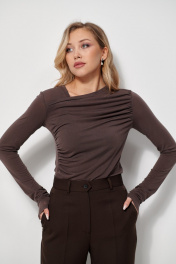 Водолазка из вискозы на каждый день с драпировкой AMUARt 1037 коричневый