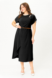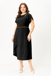 Платье женское полуприлегающего силуэта из легкой плательной ткани длинной миди. Платье отрезное по линии талии, лиф полочки на запах, который формирует декоративную прорезь в области левого плеча. Юбка полочки с запахом который красиво драпируется благодаря складкам по талии образуя разрез по низу.