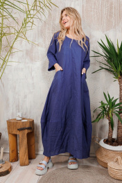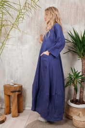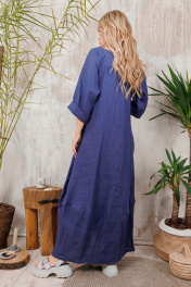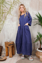 Льняное платье с тюльпанной юбкой и большими карманами АМУЛЕТ 9629 индиго