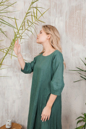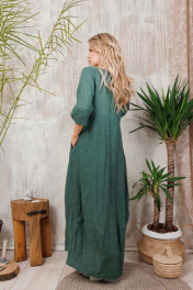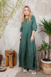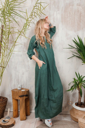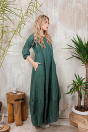 Длинное льняное платье с рукавами-тюльпанами и карманами АМУЛЕТ 9630 изумруд