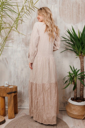 Платье льняное приталенное на каждый день с карманами АМУЛЕТ 9639 теленый