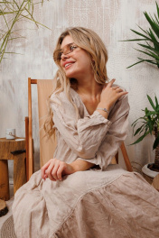 Притягательное в своей натуральности льняное платье "АМУЛЕТ". В швах удобные карманы, по юбке два ряда валанов , на кукавах маленькие складочки. Все изделия коллекции "АМУЛЕТ" имеют натуральную ткань, сложную обработку всех внутренних швов и энергосберегающий крой. В подарок идет шопер с логотипом бренда. Рост 164: ДИ 134 см, ДР от горловины 57 см Рост 170: ДИ 140 см, ДР от горловины 60 см
