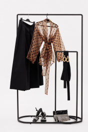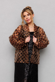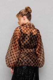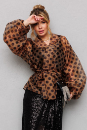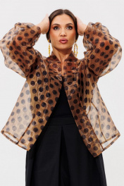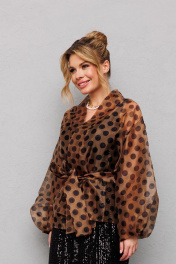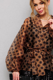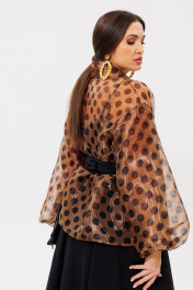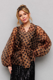 Туника из органзы с горохами и съемным поясом Anastasia 1061 кофе