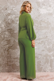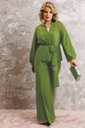 Элегантный вечерний костюм-двойка, состоящий из блузки свободного кроя и широких брюк. Красивый и эффектный брючный костюм - это идеальный образ для особых случаев, вечерних выходов, праздничных и торжественных мероприятий, будь то корпоратив, свадьба, юбилей, выпускной, день рождения, Новый год Блузка прямого силуэта со пущенной линией плеча. Рукав двойной, расширенный к низу со складками. По спинке и полочке идет планка. В комплекте с блузкой идет съемный пояс. На концах пояса металлизированная бахрома. Брюки прямые с запахом по переду, пояс на резинке.Благодаря фасону и крою, костюм визуально вытянет силуэт, сделает фигуру стройнее, подчеркнет ее достоинства, скроет недостатки. Элегантный брючный костюм от Anastasia- комфорт и уверенность в себе на любом мероприятии Длина блузки: (48-56)-61см. Длина рукава-52см. Длина брюк:(48-54)-105см., (56)-108см.