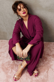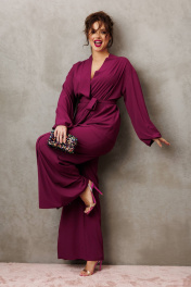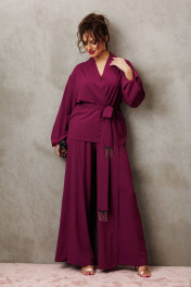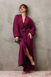 Элегантный вечерний костюм-двойка, состоящий из блузки свободного кроя и широких брюк. Красивый и эффектный брючный костюм - это идеальный образ для особых случаев, вечерних выходов, праздничных и торжественных мероприятий, будь то корпоратив, свадьба, юбилей, выпускной, день рождения, Новый год Блузка прямого силуэта со пущенной линией плеча. Рукав двойной, расширенный к низу со складками. По спинке и полочке идет планка. В комплекте с блузкой идет съемный пояс. На концах пояса металлизированная бахрома. Брюки прямые с запахом по переду, пояс на резинке.Благодаря фасону и крою, костюм визуально вытянет силуэт, сделает фигуру стройнее, подчеркнет ее достоинства, скроет недостатки. Элегантный брючный костюм от Anastasia- комфорт и уверенность в себе на любом мероприятии Длина блузки: (48-56)-61см. Длина рукава-52см. Длина брюк:(48-54)-105см., (56)-108см.