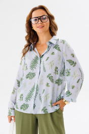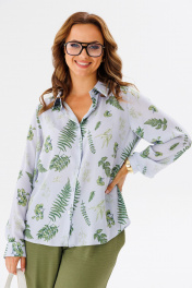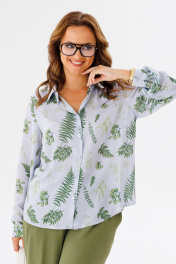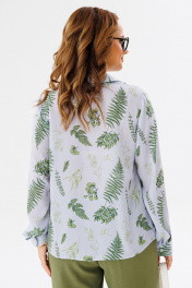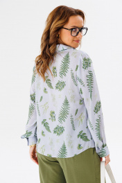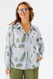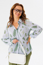 Блуза летняя из блузочной ткани с воротником и коротким рукавом Anastasia 1134.1 серо-голубой(растительный_принт)
