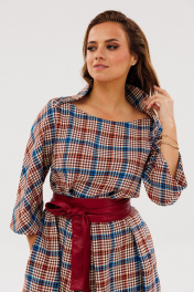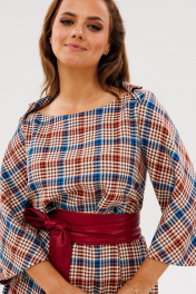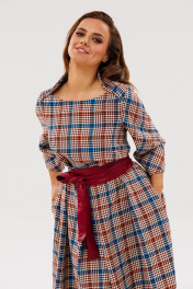 Платье Anastasia 1136 марсала(принт_клетка)