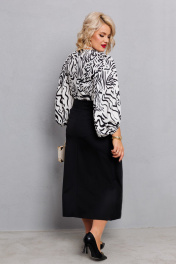 Двойной комплект из атласной блузы и ткани юбки Anastasia 1176 молочный+принт/черный - фото 2