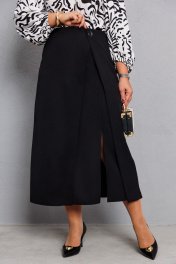Бренд белорусской женской одежды Anastasia представляет комплект двойку. Комплект женский 2-х предметный (блузка, юбка) станет отличным дополнением к Вашему гардеробу. Подойдет для повседневной носки (работа, офис, прогулки) и на праздничный выход. Блузка из атласной ткани полуприлегающего силуэта. По полочке идет нагрудная выточка из бокового шва. Вырез V-образной формы с планками и складкой по центру. По спинке средний шов, рукав обьемный, по окату сборка. Низ рукава фигурный, на резинке. Юбка А-силуэта из текстильной ткани. Пояс на обтачке. По переду юбка двойная. Верхний слой: запах в виде косых подрезов, начинающихся от пояса; нижний слой с подрезом по линии колена, переходящим в разрез. В качестве декора пуговица. По спинке средний шов с молнией. Длина спинки: (48-52)-70см., (54-58)-71см. Длина рувака: (48-52)-53см., (54-58)-54см. Длина юбки - 91 см