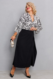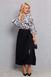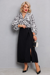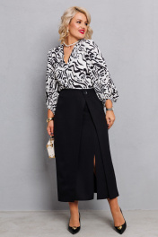 Двойной комплект из атласной блузы и ткани юбки Anastasia 1176 молочный+принт/черный - фото 1