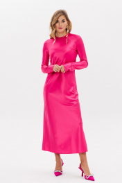 Платье из текстиля макси, рюшами и расклешением, полусвободный крой Anastasia 1184 фуксия