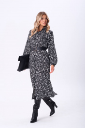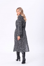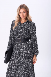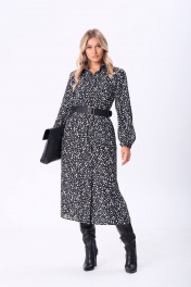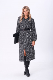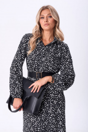 Создайте свой неповторимый образ с этим элегантым женским платьем от Anastasia! Оно имеет удивительно комфортный крой, который скроет все недостатки фигуры. Идеальный вариант как для повседневной носки, так и для праздничного выхода. Представлены два варинат носки: с поясом или без. Модель прямого силуэта. В верхней части полочки идут грудовые выточки из бокового шва. Застежка планка на петли и пуговицы до низа. Воротник на отрезной стойке. В платье по бокам - разрезы. Рукав длинный на резинкке. Пояс в комплекте. Длина по спинке: (48-52)-123см, (54-58)-126см. Длина рукава: (48-58)-63см.