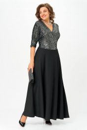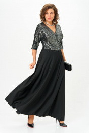 Элегантное женское платье из двух видов ткани: пайетки и текстиль- иделаный выбор на Новый год и другие торжественные мароприятия. Отрезное по линии талии. Благодаря своему крою прекрасно будет смотреться на любой фигуре, скрывая недостатки. Юбка-солнце-клеш. Верхняя часть со свободным рукавом "летучая мышь", на подкладке из стрейчевой сетки. Благодаря этому платье не колется. В правом боковом шве лифа - отверствие для пояса,который протягивается и завязывается по спинке. Прилегание платья регулируется запахом и поясом. Длина по спинке: верхняя часть -40см, юбка -106см. Длина рукава о горловины - 46 см.