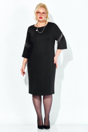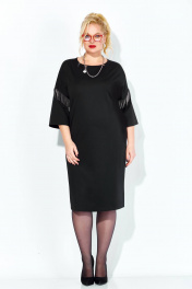 Черное платье миди — не просто одежда, это заявление о вашем стиле и вкусе. Элегантное праздничное платье прямного силуэта из трикотажного полотна. Ткань не мнется. Благодаря своему крою подойдёт для разных типов фигуры. Оно подчеркнёт вашу индивидуальность и станет отличным дополнением к вашему гардеробу. В нём вы будете чувствовать себя уверенно и комфортно, зная, что выглядите на все сто. Выбирая его, вы выбираете качество, комфорт и стиль. Классическое черное платье прямого силуэта, со спущенным плечом. Такое платье незаменимая вещь в любом гардеробе. В качестве декора металлизированная бахрома на рукавах, брендированная нашивака на горловине и спинке. По спинке идет средний шов. Такое платье незаменимая вещь в любом гардеробе. Рекомендуется носить на черное белье. Длина платья по спинке (48-52) - 100см, (54-58) - 104 см. Длина рукава: (48-58) - 26 см.