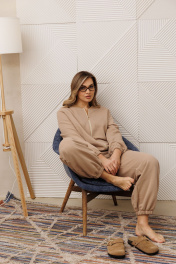 Стильный женский спортивный костюм из трикотажного футера от Anastasia станет незаменимой частью гардероба для активного отдыха и повседневной носки каждой модницы. Состоит из джемпера на молнии и брюк - джоггеров с высокой посадкой и боковыми карманами. Низ рукава, низ и пояс брюк на резинке. В качестве декора - нашивка по спинке и брендированная металлическая нашивка на горловине. Наслаждаться спортивными активностями будет комфортно. Материал теплый и приятный, отлично подойдет для любой погоды. Мягкая резинка довяз на поясе и по горловине обеспечивают комфортную посадку и носку и не будут стеснять движения. Костюм спортшик подходят для различных видов деятельности: от утренних пробежек до поездок по городу на велосипеде или встреч с друзьями в кафе. Подойдет как для взрослых женщин и девушек, в том числе кто предпочитает большие размеры, так и для девочек подростков. Ткань долговечная, простая в уходе, не мнется и не скатывается, а оригинальный дизайн - стежка позволит всегда оставаться в центре внимания! Независимо от того, занимаетесь ли вы спортом, ходите в такой одежде дома или просто хотите выглядеть стильно и модно - наш костюмчик станет верным спутником. Почувствуйте себя уверенно и комфортно с стильным костюмом от "Анастасия"! Комплект без подклада, не на флисе, без начеса, ткань не просвечивает. Длина джемпера по спинке: (50-54)-58 см, (56-60)-60см. Длина рукава: (50-54)-64см, (56-60)-65см, Длина брюк: (50-54)-97см , (56-60)-100см