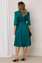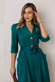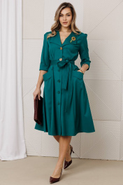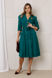 Бренд белорусской женской одежды больших размеров Anastasia представляет красивое, дизайнерское, платьев романтичном стиле для женщин плюс сайз. Платье полуприлегающего силуэта с рельефами, выходящими из плечевого шва, и переходящими в юбку-гаде. Застежка на петли и пуговицы. Воротник стояче-отложной опаш. По полочке идут карманы с клапанами. Рукав 3/4 длины с отложной манжетой и складками по плечу. В качестве декора идет разный дизайн пуговиц и пришивная брошь. Подчеркнуть талию можно с помощью пояса, который идет в комплекте. В этом платье вы будете центром внимания в любой компании. Благодаря женственному силуэту вы будете всегда ощущать себя красивой и модной. .Все модели от Anastasia – это уникальные изделия, которые выполняются исключительно малыми партиями. Добавьте красоты и изящества в свой гардероб с нашей новой коллекцией! ВНИМАНИЕ: брошь может отличаться от фото. Длина платья: (48-52)- 115 см, (54-56)-116см, (58-62)-118см. Длина рукава: (48-52)-42 см, (54-56)-43см, (58-62)-45см