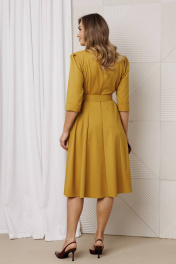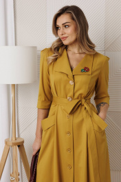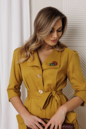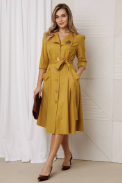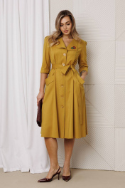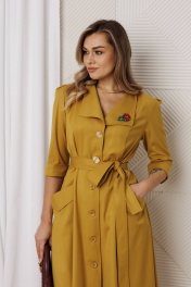Бренд белорусской женской одежды больших размеров Anastasia представляет красивое, дизайнерское, платьев романтичном стиле для женщин плюс сайз. Платье полуприлегающего силуэта с рельефами, выходящими из плечевого шва, и переходящими в юбку-гаде. Застежка на петли и пуговицы. Воротник стояче-отложной опаш. По полочке идут карманы с клапанами. Рукав 3/4 длины с отложной манжетой и складками по плечу. В качестве декора идет разный дизайн пуговиц и пришивная брошь. Подчеркнуть талию можно с помощью пояса, который идет в комплекте. В этом платье вы будете центром внимания в любой компании. Благодаря женственному силуэту вы будете всегда ощущать себя красивой и модной. .Все модели от Anastasia – это уникальные изделия, которые выполняются исключительно малыми партиями. Добавьте красоты и изящества в свой гардероб с нашей новой коллекцией! ВНИМАНИЕ: брошь может отличаться от фото. Длина платья: (48-52)- 115 см, (54-56)-116см, (58-62)-118см. Длина рукава: (48-52)-42 см, (54-56)-43см, (58-62)-45см