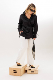 Оригинальная блузка женская из атласной ткани прямого силуэта со спущенным плечом. По бокам разрезы. Рукав со сборкой на манжете и завязками. По полочке идет отрезная планка с отделкой кружевом и застежка в виде запаха с завязками. Воротник на отрезной стойке. Спинка длинее полочки. Такой женский офисный стиль можно носить, сочетая с другими вещами гардероба, создавая новые образы. Ткань атласная качественная и очень комфортная. Этот универсальная стильная блузка есть в больших размерах. Она отлично подойдет для офиса, для праздника, на каждый день, для вечеринки и корпоративы, для прогулок, для отдыха, для работы, на выпускной, на день рождения для высоких и для невысоких девушек и женщин. Блузка станет любимой вещью в гардеробе и сделает Ваш образ незабываемым! В «Анастасия» Вы всегда найдете богатый выбор качественной одежды для женщин больших размеров. Длина по спинке: (50-54)-76 см, (56-60)-79см. Длина рукава с манжетой: (50-54)-57 см, (56-60)-59см