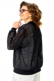 Легкий жакет -"бомбер" из трикотажного полотна в рубчик и сетку -тренд сезона для стильных и уверенных в себе. Воздушный материал создаёт нежный и лёгкий образ, который отлично подойдёт как для дневных прогулок, так и для вечерних выходов. Жакет прямого силуэта на молнии. Воротник-стойка, манжеты по низу рукава и изделия из довяза. Это не просто вещь, а настоящий акцент вашего гардероба, который подчеркнёт вашу индивидуальность и хороший вкус.Длина жакета (по спинке с довязом): (50-54)-62 см, (56-60)-64 см. Длина рукава (с манжетой):(50-54)-60 см, (56-60)-61 см