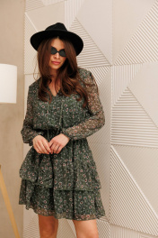 Платье Anastasia 955 зеленый_принт(ромашки)