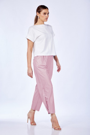 Комплект из трикотажа и эко-кожи с брюками и топом Anastasia 979 молочный/холодный_розовый