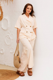 Ситильный костюм женский 2-х предметный (жакет, брюки) от Anastasia подойдет как для повседневной носки (работа, офис, прогулки), так и для праздничных выходов. Достаточно дополнить его соответствующими аксессуарами. Предметы комплекта легко будут сочетаться с вещами из Вашего гардероба. Отлично будет смотреться с разными видами обуви ( специально для вас представлено на фото). Жакет двухбортный, полуприлегающего силуэта со спущенным плечом, по спинке средний шов и выточки, по полочке талиевая высточка из бокового шва. Воротник "пиджачного" типа, карман клапан "обманка". Брюки прямые, пояс на резинке, по бокам карманы. Длина жакета:(48-52)-69см., (54-58)-70см. Длина рукава: (48-52)- 18 см. Длина брюк: (48-52)-99см., (54-58)-100см.