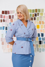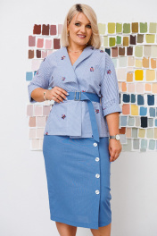 Ищете классную сезонную одежду в офис на лето? Костюм женский с юбкой это всегда стильно! Элегантный дизайн хлопкового костюма с жакетом от бренда «Anastasia» подарит комфорт и уверенность в себе. Особенности модели: жакет женский стильный пиджак из хлопка полуприлегающего силуэта, на запах, фиксируется съемным поясом. Воротник - асимметричный: апаш и шалевый, со спущенным плечом. Рукав 3/4 длины, с отложной манжетой из отделочной ткани. Юбка однотонная, классическая, зауженная к низу, по полочке по линии колена - складка, переходящая в шлицу. Отделка в виде пуговиц. В комплект входит пояс из основной ткани. Такой костюм женский офисный стиль можно носить, сочетая с другими вещами гардероба, создавая новые образыТкань элегантного костюма женского с пиджаком качественная и очень комфортная. Этот универсальный костюм двойка большой размер стильный отлично подойдет весной и летом для офиса, для праздника, на каждый день, для вечеринки, для прогулок, для отдыха, для работы, на выпускной, на день рождения для высоких и для невысоких девушек и женщин. Костюм офисный с жакетом юбочный станет любимой вещью в гардеробе и сделает Ваш образ незабываемым! В «Анастасия» Вы всегда найдете богатый выбор качественной одежды для женщин больших размеров. Длина спинки (жакет)- (50-54)-68см, (56-60)-71см. Длина рукава: (50-54)-40 см, (56-60)-42см. Длина юбки 75см