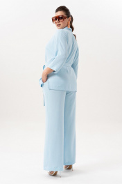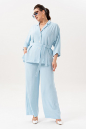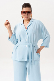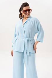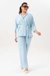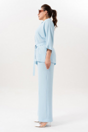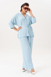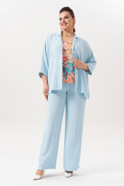 Костюм женский тройка, на любые мероприятия, состоящий из жакета ,брюк и топа. модный соременный. Жакет с воротником пижачного пита, с центральной бортовой застёжкой на 3 петли и 3 пуговицы, полочка с нагрудной вытачкой, с рарзезами по бокам. жакет со сьёмным поясом. Спинка цельная. Брюки женские прямого кроя, на притачном поясе с резинкой.. Передние половинки с карманами в швах. Топ прямого силуэта с нагрудными вытачками и с разрезами по боковым швам. Блузка-топ с регулирующей длину бретелек фурнитурой.