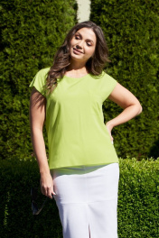 На каждый день женская блузка из вискозы с открытым плечом Andina city 5006 лайм