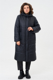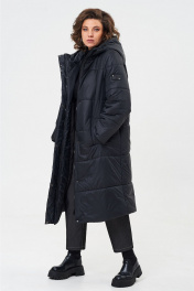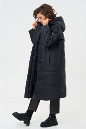 Пальто прямое с капюшоном из плащевой ткани Andina city 7013-24 черный