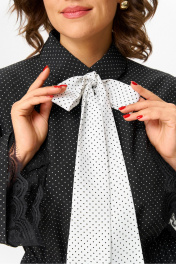 Платье из приятного крепа в горох станет идеальным выбором для любого случая. Длина макси и свободный крой создают элегантный силуэт, а съёмный воротник-бант контрастного цвета добавляет женственности и романтичности. Модель с длинными рукавами с кружевом по низу, с воротником на стойке и застежкой спереди на пуговицах удобна в носке и подчеркивает достоинства фигуры. Длина платья 134 см.