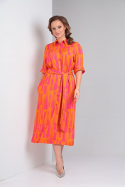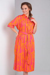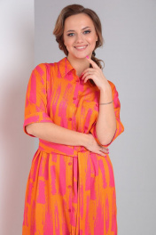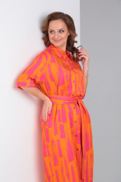Платье-рубашка из вискозы с поясом и бантовым рукавом Andrea Fashion 2 оранж
