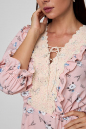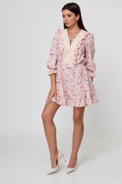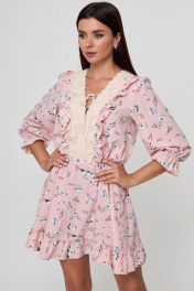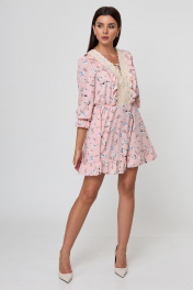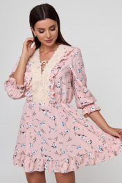 Платье стиль беби-долл с рюшей и кружевной отделкой Anelli 1023 пудра_цветы