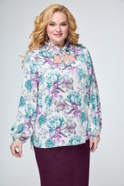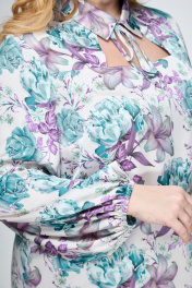 Блуза из шёлка с атласными завязками и вырезом каре Anelli 1028.1 белый_цветы