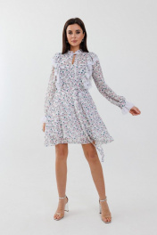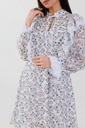 Платье из принтованного шифона с воланами и подкладкой Anelli 1030 белый