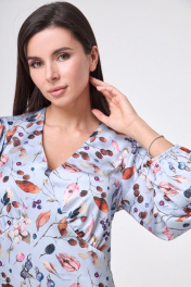Платье из шелковой ткани с сборками и V-образным вырезом Anelli 1045 голубой_армани