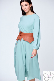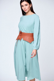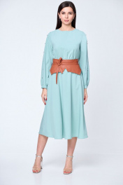 Платье из вискозы с разрезами и поясом, с пуговицами рыбкой, на каждый день Anelli 1128 мята