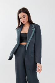 Жакет слегка приталенный, длиной до бедра, застежка на петлю пуговицу. Рукав длинный со шлицей, с декоративными пуговицами. Жакетный отложной воротник декорирован бархатной тесьмой. По переду прорезные карманы с клапаном. Жакет на подкладке. Подчеркнуть талию можно поясом. Брюки прямые длинные. С боковыми карманами. Застежка гульфик с молнией, пояс на пуговицу. Костюм суперактуальный, стильный и вы в нем будете выглядеть на все 100. Для фото так же использовали топ 767 Anelli Laurel в образе. Цвет на фото может отличатся от цвета изделия в живую, из-за разницы освещения и цветопередачи экранов на которых просматривается изображение. Оставляя Ваш честный отзыв Будем благодарны за отзыв с фото. Вся необходимая информация о производителе указана на этикетке. Замеры: Размер 48: Жакет: ОГ-96 ; ОТ-82; ДИ-74; ДР -60. Брюки: ОТ-80; ОБ-104; ДИ-111. Размер 50: Жакет: ОГ-100 ; ОТ-86; ДИ-74; ДР -60. Брюки: ОТ-84; ОБ-108; ДИ-111. Размер 52: Жакет: ОГ- 104; ОТ-90; ДИ-74; ДР -60. Брюки: ОТ-88; ОБ-112; ДИ-111. Размер 54: Жакет: ОГ- 108; ОТ-94; ДИ-74; ДР -60. Брюки: ОТ-92; ОБ-116; ДИ-111. Размер 56: Жакет: ОГ- 112; ОТ-98; ДИ-74; ДР -60. Брюки: ОТ-96; ОБ-120; ДИ-111. Размер 58: Жакет: ОГ- 116; ОТ-102; ДИ-75; ДР -60. Брюки: ОТ-100; ОБ-124; ДИ-111.