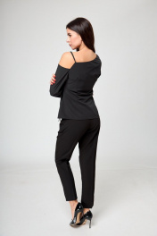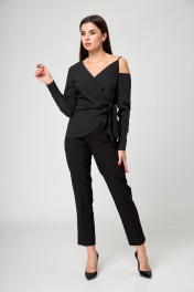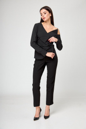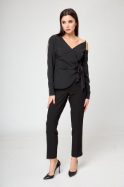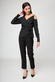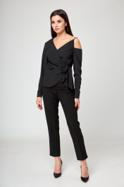 Черная блуза со запахом и завязками на одно плечо Anelli 1177 черный