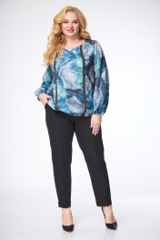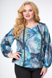 Свободная блуза из трикотажа с V-образным вырезом и низом на резинке Anelli 1208 морской_бриз