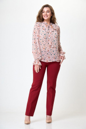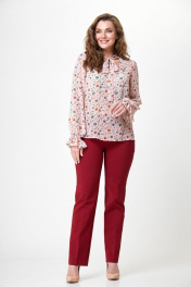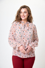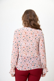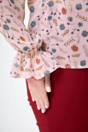 Блуза из легкой ткани с бантом и V-образным вырезом на резинке Anelli 1233 розовый+цветы