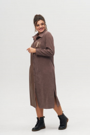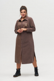Платье-рубашка, прямого кроя, чуть расширенный к низу силуэт, длина миди. Длинный рукав. Классический рубашечный воротник на стойке. Застежка на петли пуговицы по переду. По переду нагрудный карман и карманы в боковых швах. Платье декорированно тесьмой по переду на нагрудном кармане и по спинке по кокетке. Подчеркнуть талию можно при помощи съемного пояса. Сочетание кожи и вельвета придаст образу новизны, свежести и стиля. Платье будет радовать вас не один сезон и вы в нем будете выглядеть законодательницей мод. Цвет на фото может отличатся от цвета изделия в живую, из-за разницы освещения и цветопередачи экранов на которых просматривается изображение. Оставляя Ваш честный отзыв Будем благодарны за отзыв с фото. Вся необходимая информация о производителе указана на этикетке. Замеры: ОГ- объем груди; ОТ-объем талии; Об-объем бедер; ДИ-длина изделия; ДР-длина рукава. Размер 54. ОГ- 108; ОТ-106; ОБ-116; ДИ-122; ДР -56. Размер 56. ОГ- 112; ОТ-110; ОБ-120; ДИ-122; ДР -56. Размер 58. ОГ- 116; ОТ-114; ОБ-124; ДИ-122; ДР -56. Размер 60. ОГ-120 ; ОТ-118; ОБ-128; ДИ-122; ДР -56. Размер 62 . ОГ- 124; ОТ-122; ОБ-132; ДИ-122; ДР -56.