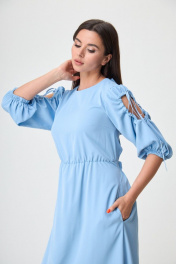 Платье длинное из вискозы с драпировками и резинкой Anelli 1264 голубой