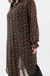 Платье-рубашка выполнено из шифона. Прямой силуэт,застежка на петли и пуговицы. Воротник рубашечного типа. Длинный втачной рукав. Низ рукава на резинке , что позволяет легко регулировать длину рукава. Оно может быть платьем или верхним слоем, завершающим образ, или просто блузой для брюк. Идеально для летнего вечера . При съемке в образе использовали брюки-1293 Anelli Замеры: Размер 50: ОГ 124; ОТ 124; ОБ 124; ДИ 112; ДР 62; ОП 46 Размер 52: ОГ 130; ОТ 130; ОБ 130; ДИ 113; ДР 64; ОП 47 Размер 54: ОГ 134; ОТ 134; ОБ 134; ДИ 113; ДР 64; ОП 47,5