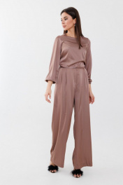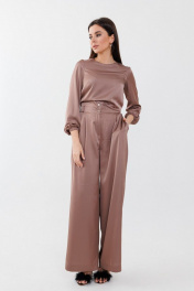 Брюки широкие из вискозы с защипами и поясом Anelli 1288.2 карамель