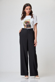 Черные прямые брюки с высокой посадкой из вискозы и хлопка Anelli 1294 черный